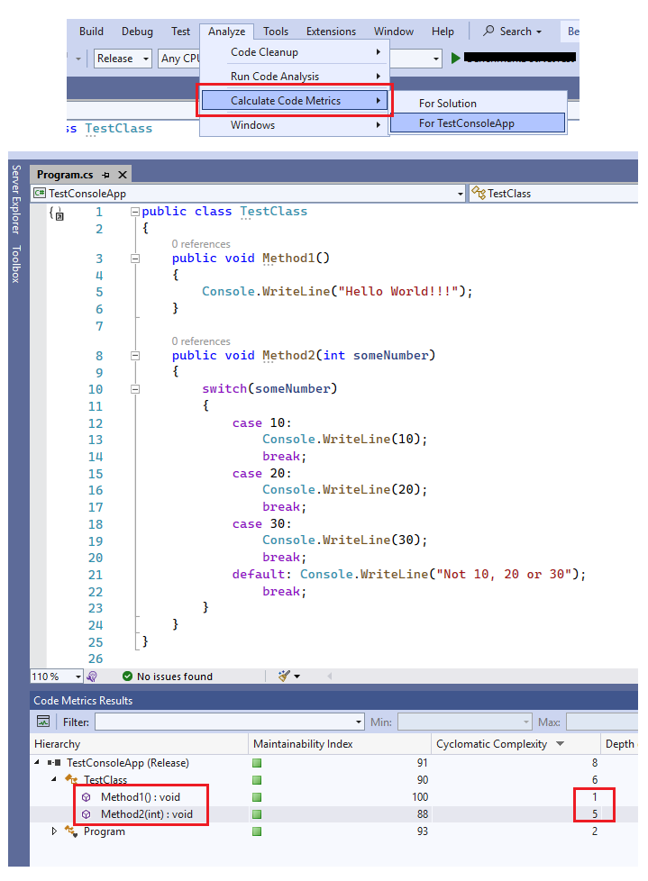 View Cyclomatic complexity in Visual Studio ⬇ Cyclomatic complexity is a measure of the distinct paths in a method. It can be useful for getting an idea how complex a method is. Do you measure CC? #dotnet