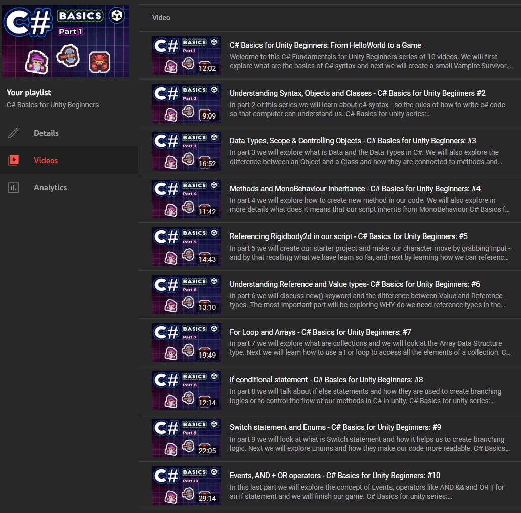 All 10 parts of my C# Basics for Unity video series are available 😊👾🥳 ➡️ youtube.com/watch?v=TgqAqn… I hope it will help you get started with programming games in C# 🚀⌨️🎮 #unity2d #unity3d #coding #csharp