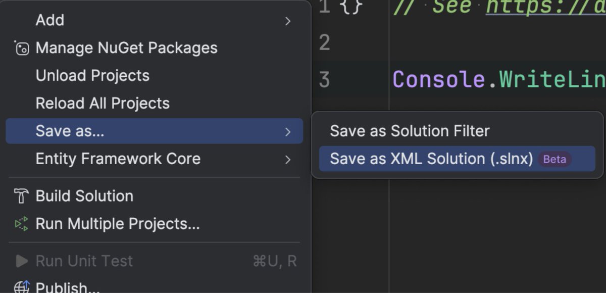The new #dotnet `.slnx` solution file format is available in the latest @JetBrainsRider preview 👏 pic.x.com/N9ZVzyrTm6
