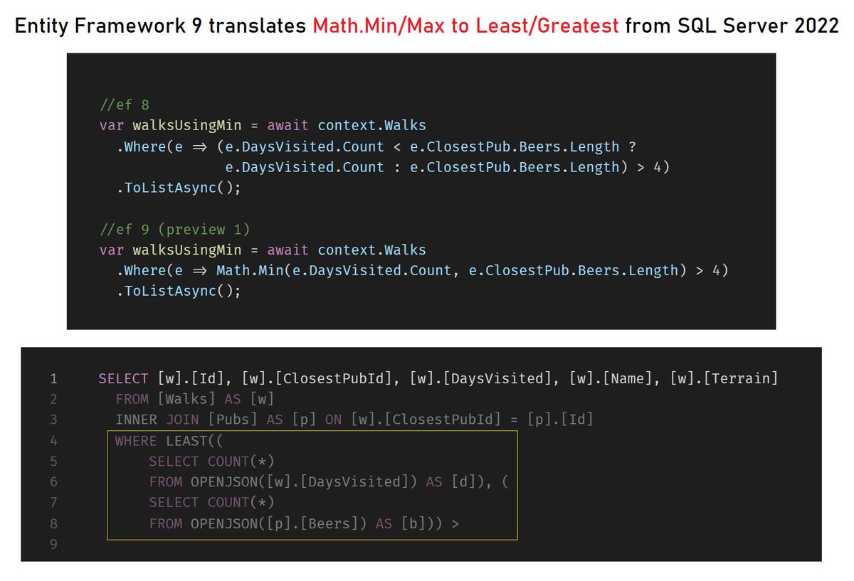 Entity Framework 9 translates Math .Min/Max to Least and Greatest from SQL Server 2022 ⬇ #dotnet x.com/i/web/status/1… pic.x.com/cugDWlXHXb