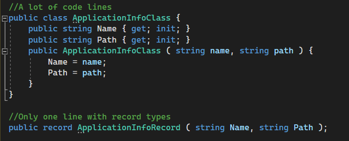 #CodingTips With #unity3d Version 2021.2 onwards and #GodotEngine 4.0 a #csharp 9 feature is usable in your scripts. Use record types which provide a very easy to read way to create objects. It'll save many lines of code and might make it easier to read. #indiedev #gamedev