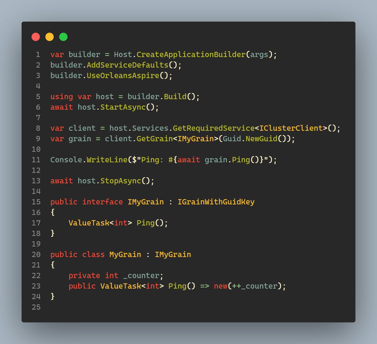.NET Aspire support for Orleans! Here's a minimal app @msftorleans #dotnet